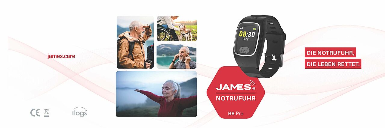Viele ältere Menschen leben alleine und sind auf sich gestellt, was im Notfall problematisch sein kann. Die JAMES Notrufuhr sorgt für schnelle Hilfe: Per Knopfdruck wird eine Sprachverbindung zu Helfern oder zur Notrufzentrale hergestellt, inklusive Standortübermittlung. Das Gerät bietet Sicherheit und erhält die Unabhängigkeit. Egal ob