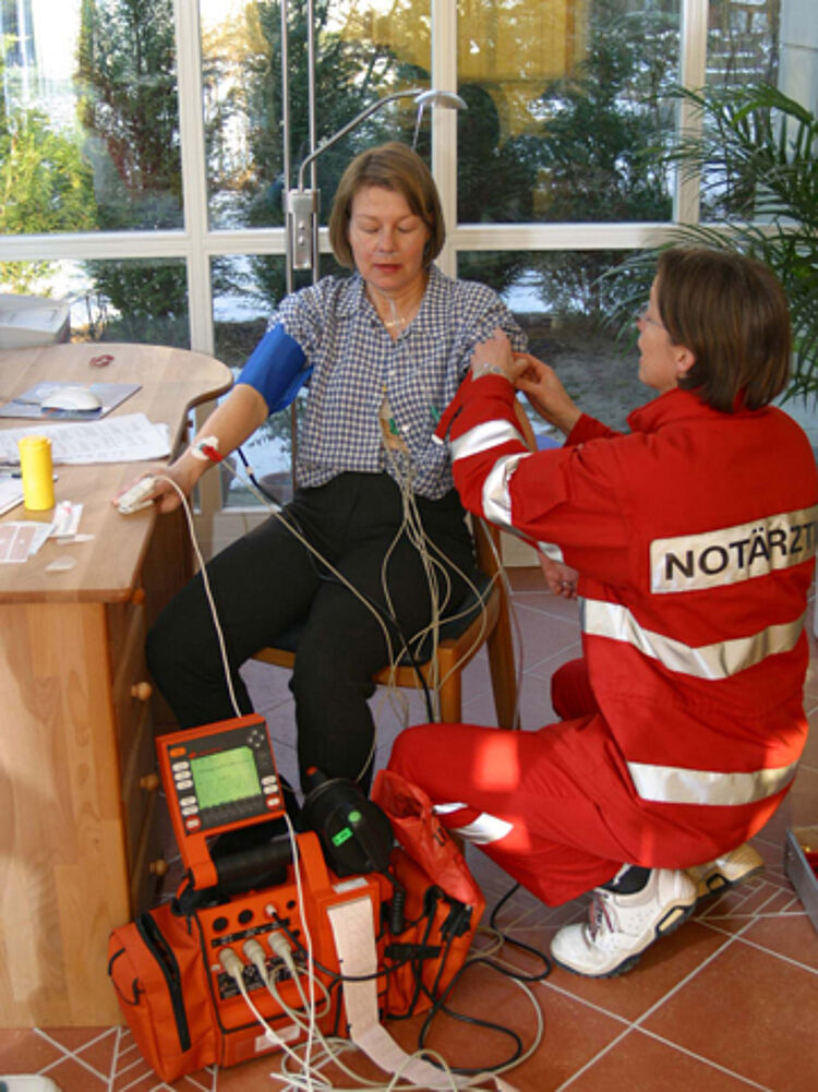 In dieser Situation kommt vom Roten Kreuz ein  besonderer Vorschlag: ob ich nicht selber einmal in die Rolle einer Notfallpatientin schlüpfen wolle. Diese Idee gefällt mir –  gleichzeitig spüre ich ein leichtes Flattern im Bauch – und ich stimme zu. Wir beschließen, einen für den Rettungsdienst typischen Notfall zu simulieren: den Verdacht auf einen Herzinfarkt. Alle haben grünes Licht für unser Projekt gegeben: die Rettungswache – dort ist der Rettungswagen stationiert, die Notärztin und das zuständige Krankenhaus.